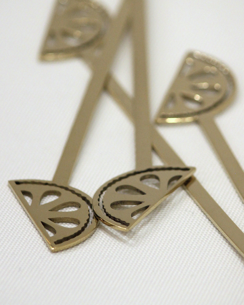 Set of 4 stainless steel flat cocktail stirrers, each with a charming lemon-shaped detail—perfect for adding a zesty touch to your drinks.