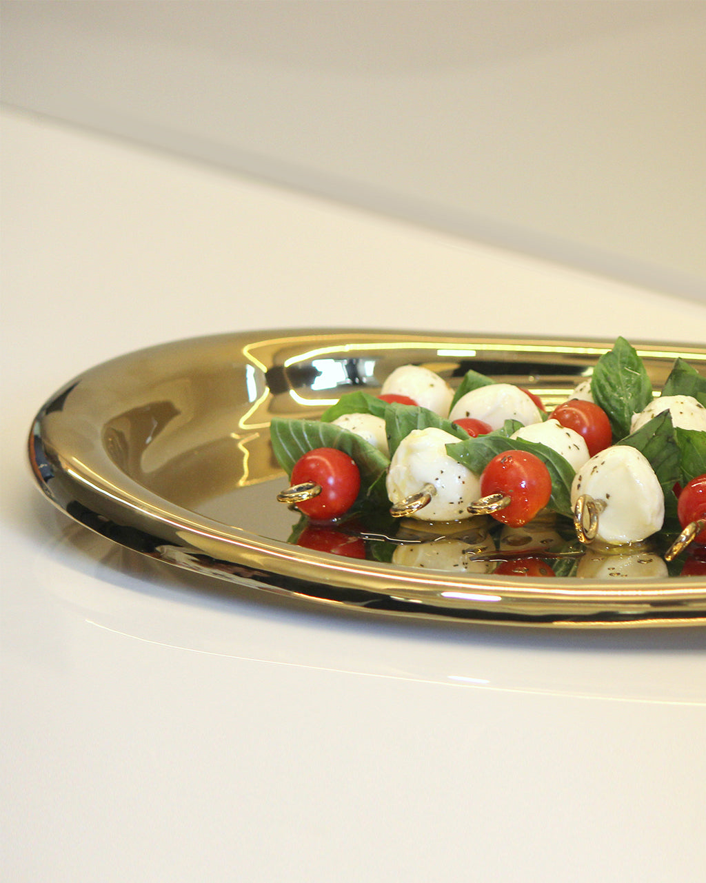 Crafted in stainless steel, this oval tray features a rounded rim and smooth, curved corners—an elegant and timeless addition to your dining table.