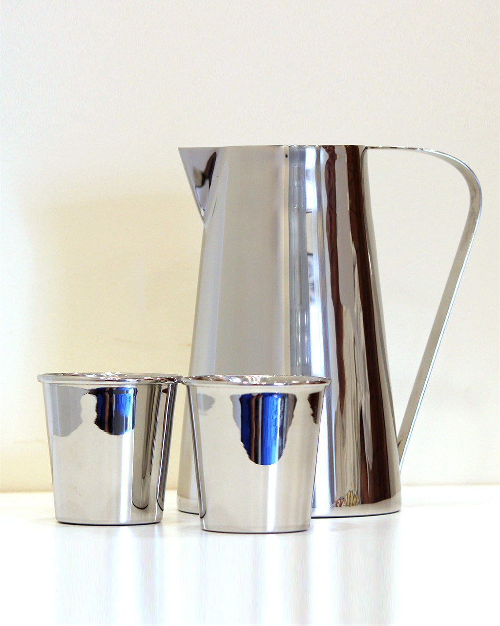 A stainless-steel carafe with a sturdy handle, designed for everyday durability and effortless style. Perfectly complements the matching tumblers.